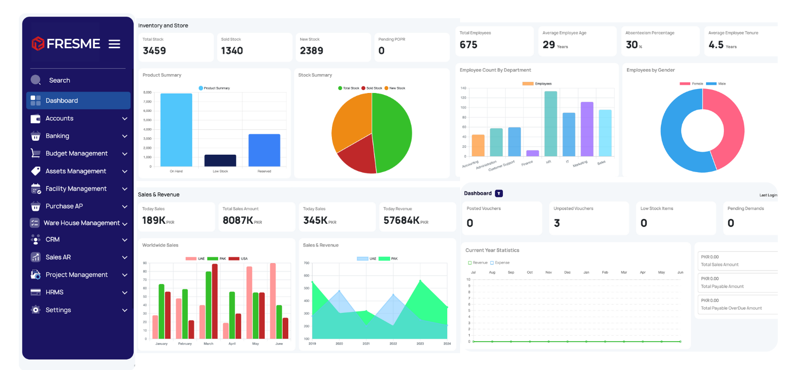 Tadbir ERP is a modular, cloud-based enterprise software developed by FRESME to help businesses manage finance, operations, HR, and more — all in one system.
